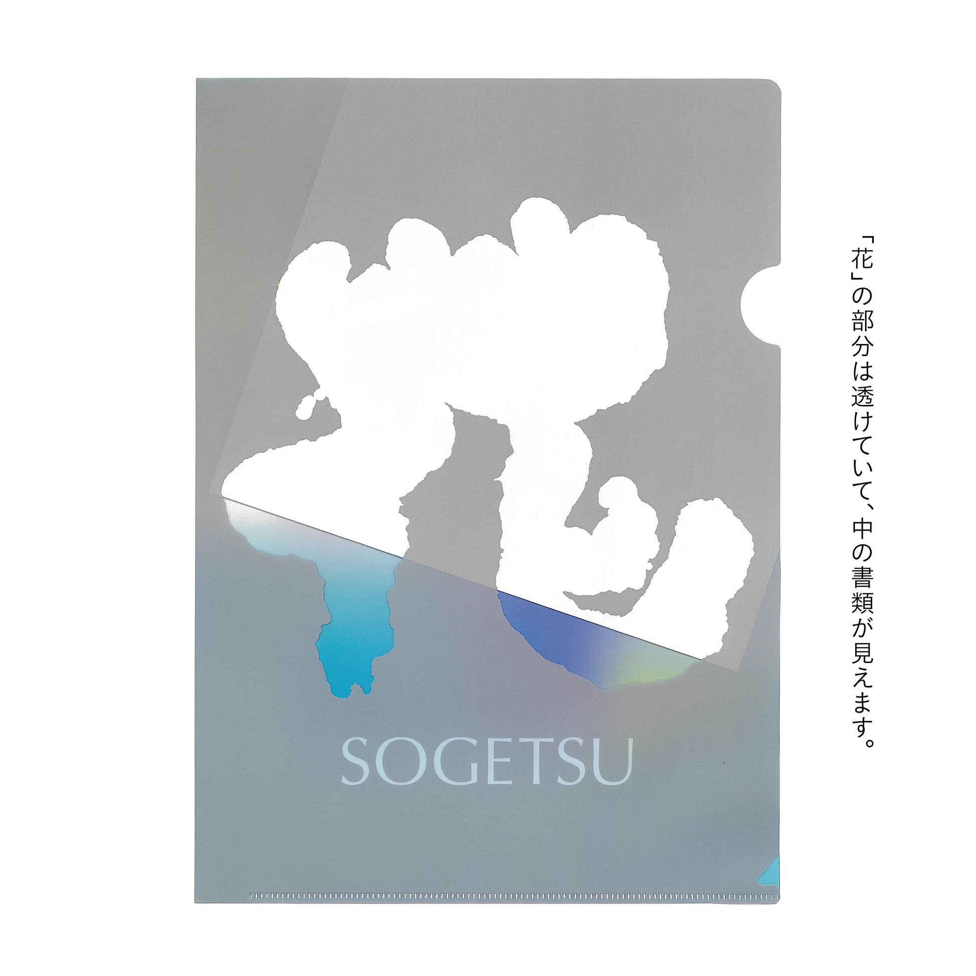 書類整理に欠かせないクリアファイル。定番のA4サイズが登場。「花」の文字は透けており、書類を入れると中身が一目でわかります。打ち合わせに、草月100周年のPRに、ぜひご使用ください。